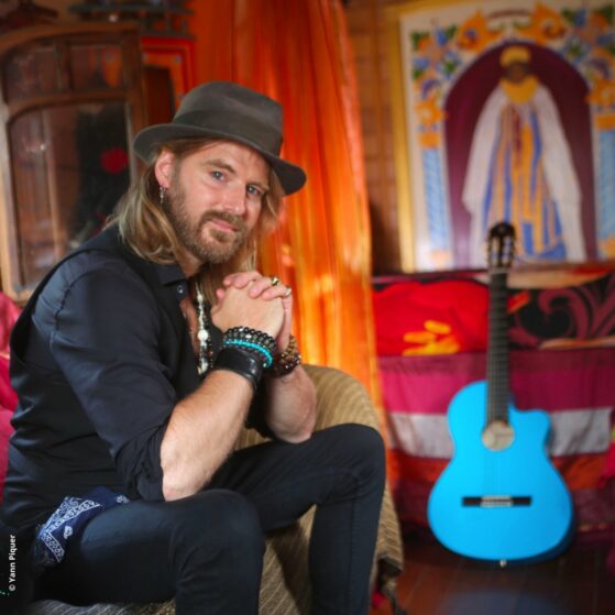 Richard BAUDUIN plus connu sous le nom de ChardRy – L’homme à la guitare bleue, dont le style musical est un subtil mélange entre le flamenco et la chanson française.
